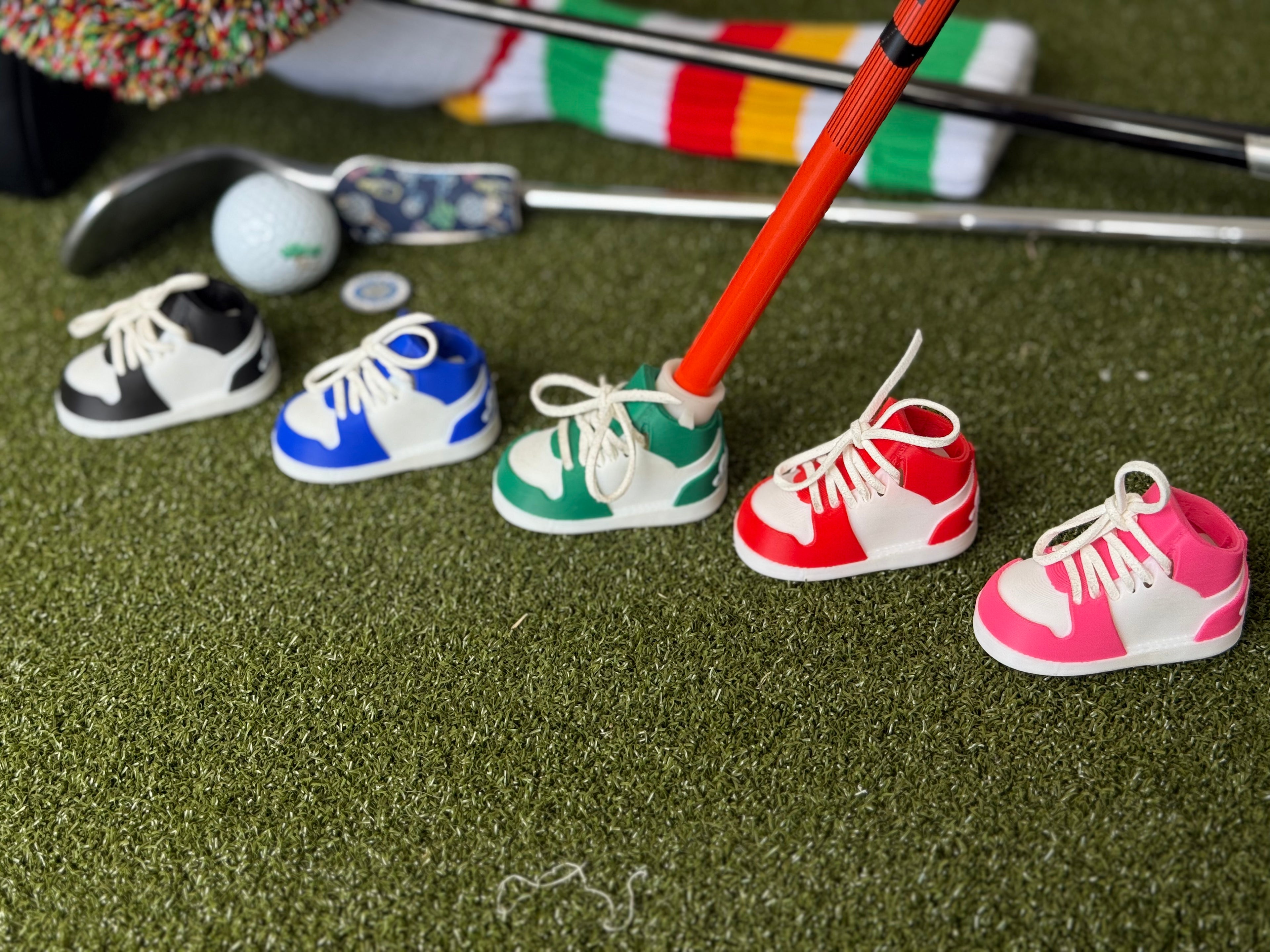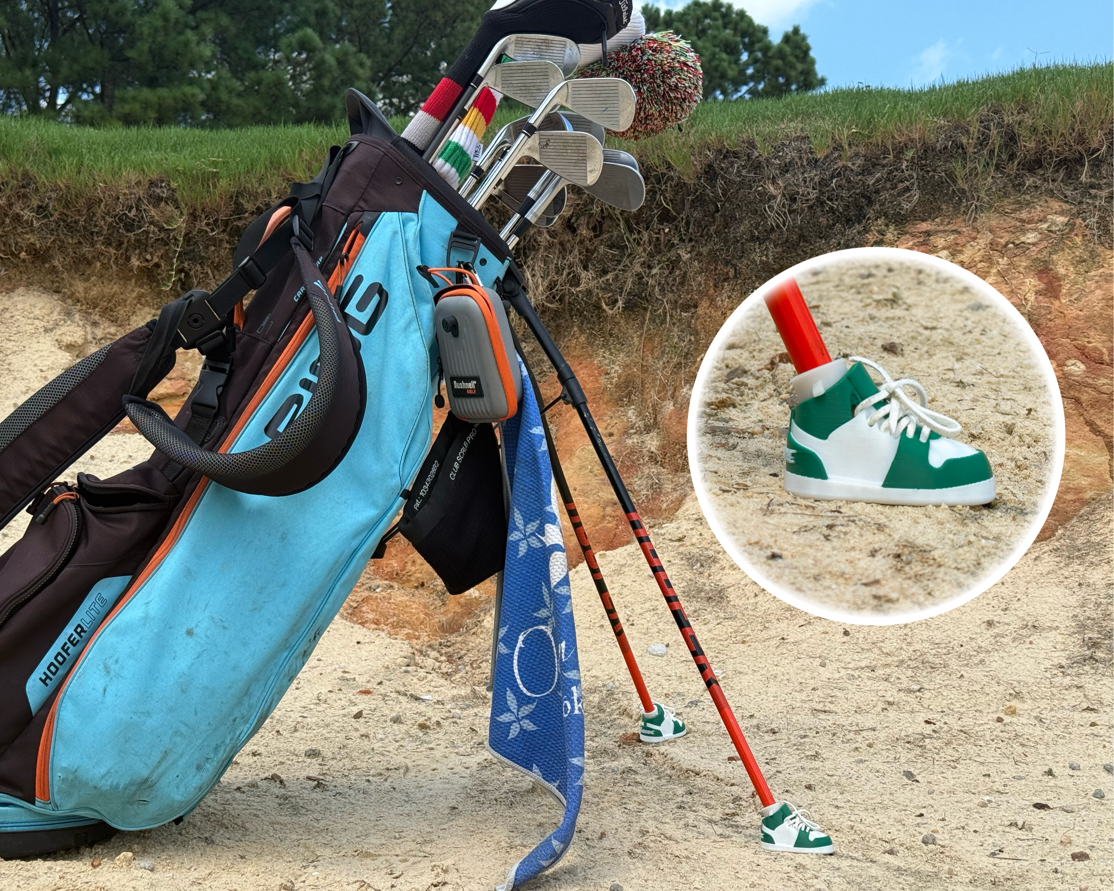 Our golf bag shoes are custom-designed to slip on and attach to the ends of your golf bag stand, giving your bag a distinctive look while adding extra grip and stability.